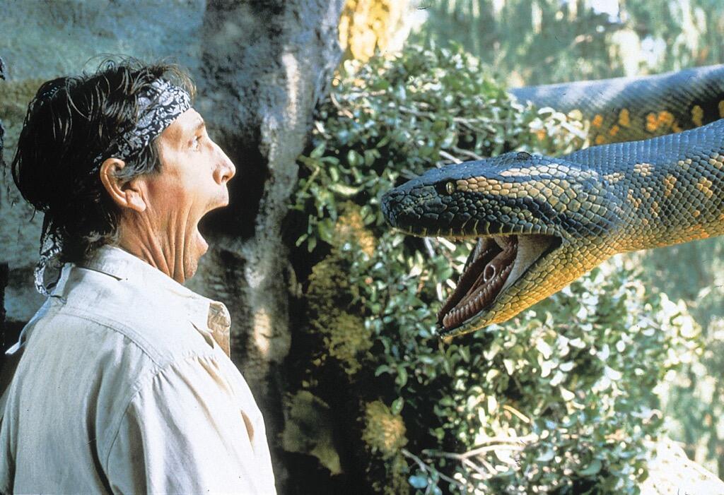 Doch was Anaconda wirklich über viele seiner Zeitgenossen erhebt, sind seine praktischen Effekte. Ja, es gibt CGI – und die sind, sagen wir es höflich, nicht besonders gut gealtert. Aber die animatronischen Anacondas, die tatsächlich gebaut und am Set eingesetzt wurden, sind beeindruckend realistisch und erzeugen auch heute noch ein wohliges Gruselgefühl. Das Gewicht, die Bewegung, das leise Knacken, wenn die Schlange sich um ihre Opfer windet – das fühlt sich greifbar an. Es ist diese physische Präsenz, die den Film selbst in seinen absurdesten Momenten erdet.